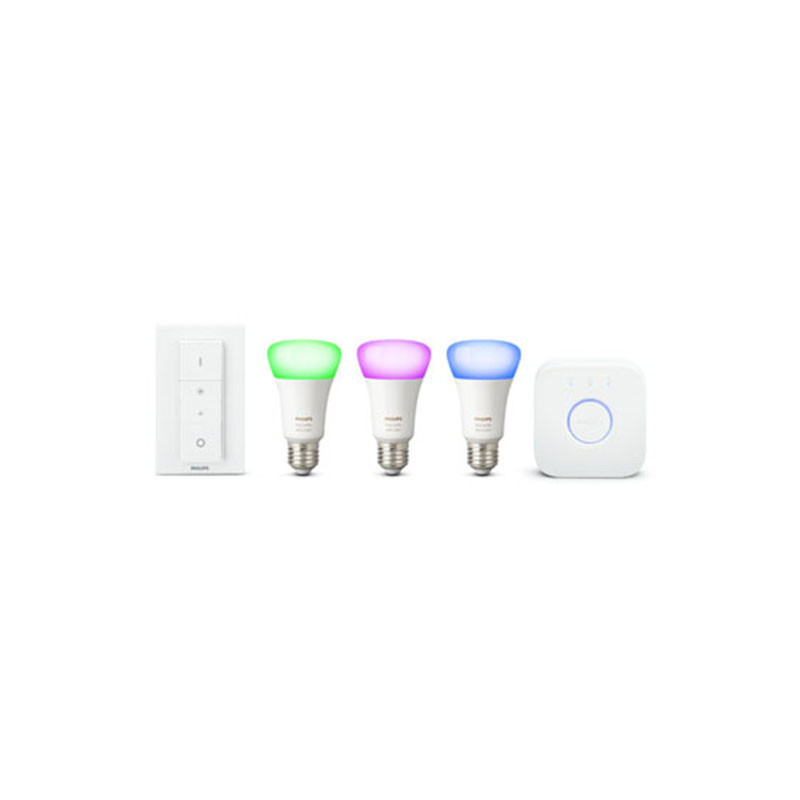 Pack Philips démarrage E27 Hue white & colors. Offre spéciale avec extension de garantie à 3 ans. Vous avez envie de créer des atmosphères uniques dans votre maison grâce à la lumière " Alors, le pack de démarrage PHILIPS Hue E27 V2 est parfait pour cela. Connectées, ces ampoules se commandent même à distance! Il est possible de gérer jusqu'à 50 ampoules en même temps. Depuis n'importe où, vous pouvez contrôler les ampoules. De cette manière, juste avant d'arriver chez vous, vous pouvez déjà décider d'allumer les lumières pour vous accueillir dans un endroit plus chaleureux. Il est aussi possible d'utiliser un système de minuterie. Type d'ampoule : Ampoule connectée Puissance : 10,0 W Equivalence : 60 W Douille : E27 (grande à visser) Classe énergétique : A+ Nombre ampoule : 3 Durée de vie : Jusqu'à 25 000 heures Eclairage : Variation de couleurs Autre : 16 millions de couleurs Lumière blanche fonctionnelle, Toutes les nuances de blanc, Blanc chaud à froid, Variation de l'intensité via smartphone uniquement Gamme Philips Hue : White and Color Ambiance Environnement : Apple Home Kit Compatible assistant vocal : Alexa et Google Assistant Livré avec : Pont Hue, Dimmer switch, Câble réseau Ethernet, adaptateur secteur, 3 ampoules Hue (matériel neuf non déballé, garantie totale 3 ans).