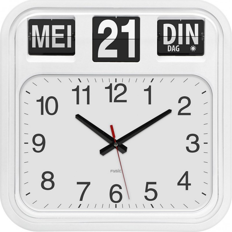 L&-39 horloge Fysic FK950 est une horloge analogique grand format, qui affiche clairement l&-39 heure, le jour et la date. Cette horloge très grand format est spécialement conçue pour l&-39 utilisation dans les grandes pièces. Cette horloge est, en raison de ses chiffres et ses lettres grand format, parfaite pour les espaces communs, les cantines, les hôpitaux et les maisons de repos. L&-39 affichage du jour et du mois en néerlandais rend l&-39 horloge FK950 unique. Elle est facile à utiliser et peut aisément être installée partout. Principales caractéristiques Indication claire de l&-39 heure, du jour et de la date Elle est sûre et simple d&-39 utilisation grâce à l&-39 affichage du jour et du mois en néerlandais. Chiffres et lettres très grand format, parfait pour les grandes pièces L&-39 horloge est également parfaite pour les personnes malvoyantes en raison du contraste important entre les chiffres/lettres et l&-39 arrière-plan. Installation facile: l&-39 horloge peut être posée ou suspendue. Parfaite pour les grandes pièces Il est possible de qualifier l&-39 horloge Fysic FK950 d&-39 horloge très grand format avec ses dimensions de 42x42cm. Cette horloge est, en raison de ses chiffres et ses lettres très grand format, parfaite pour les espaces communs, tels que les cantines, les hôpitaux, les salles d&-39 attente, les maisons de repos ou le hall d&-39 entrée d&-39 un complexe d&-39 appartements ou d&-39 un immeuble. L&-39 horloge FK950 est, en raison du contraste important entre les chiffres/lettres et l&-39 arrière-plan, également clairement et facilement lisible, même de loin. Elle est aussi parfaite pour les personnes malvoyantes. Qualité supérieure Cette horloge analogique blanche offre un affichage analogique de l&-39 heure, avec le jour et le mois indiqués en néerlandais. Quel bonheur de ne pas avoir à penser à cela! Sûre et simple! Le mécanisme silencieux est source de tranquillité, vous n&-39 entendez pas le tic-tac des aiguilles. Un vrai plaisir! L&-39 horloge peut également être facilement installée partout. Elle peut être posée ou suspendue. L&-39 horloge est facile à installer, elle peut être posée ou suspendue. Grâce au mécanisme Seiko Quartz de qualité supérieure, vous bénéficiez toujours de l&-39 heure correcte. L&-39 horloge Fysic FK950 est prête à l&-39 emploi grâce aux piles fournies (une pile AA et deux piles C). Contenu de l&-39 emballage Horloge analogique Une pile AA et deux piles C Manuel en néerlandais, anglais, allemand et français L’horloge Fysic FK950 est une horloge analogique grand format, qui affiche clairement l’heure, le jour et la date. Cette horloge très grand format est spécialement conçue pour l’utilisation dans les grandes pièces. Cette horloge est, en raison de ses chiffres et ses lettres grand format, parfaite pour les espaces communs, les cantines, les hôpitaux et les maisons de repos. L’affichage du jour et du mois en néerlandais rend l’horloge FK950 unique. Elle est facile à utiliser et peut aisément être installée partout. Produit neuf dans son emballage d'origine bénéficiant de la garantie originale du fabricant. EAN 8712412594054.