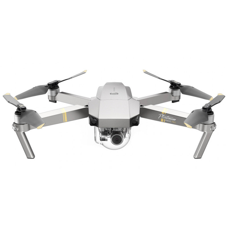 Drone DJI Mavic Pro Platinium. Offre spéciale avec extension de garantie à 3 ans. - Wi-Fi - Portée : 7000m - Hauteur de vol maxi : 5000m - Caméra : 4K, Capteur CMOS 1/2,3" de 12,35 Mpixels - Champ de vision : 78° - F = 28mm - f/2,2 - ISO 100-3200 - Prises de photo rafale et intervalle - Vidéo en temps réel - Alimentation : Autonome (batterie) - Autonomie : 30 mn - Capteurs et actuateurs intégrés - Capteurs de proximité - Capteur de sol - Accéléromètre - Radiocommande - Fréquence : 2,4GHz - Fonction hover - Drone suiveur - Points de passage possibles - Contrôle par GPS - Contrôle intelligent de l'orientation - Vitesse max : 65km/h - Portée limitée à 4km dans l'UE - 60% moins bruyant que le Mavic Pro (matériel neuf non déballé, garantie totale 3 ans).