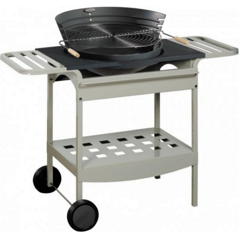Barbecue en fonte facile à déplacer grâce à son chariot en métal. Le barbecue Shogun Gril dispose d'une large grille de cuisson de 50cm (réglable sur 3 hauteurs), d'une cuve avec diffuseur, d'une grille foyère et et d'un pare-vent entièrement en fonte. Design de la cuve: B.Dequet. - cuve et pare-vent entièrement en fonte - chariot en métal facile à déplacer - large grille de cuisson 50cm réglable sur 3 hauteurs - aération centrale de la cuve avec diffuseur - grille foyère pour le maintien du charbon de bois - système de décendrage rapide par le bas de la cuve - tablettes en métal latérales - support d'ustensiles. Produit neuf dans son emballage d'origine bénéficiant de la garantie originale du fabricant. EAN 3244337051107.