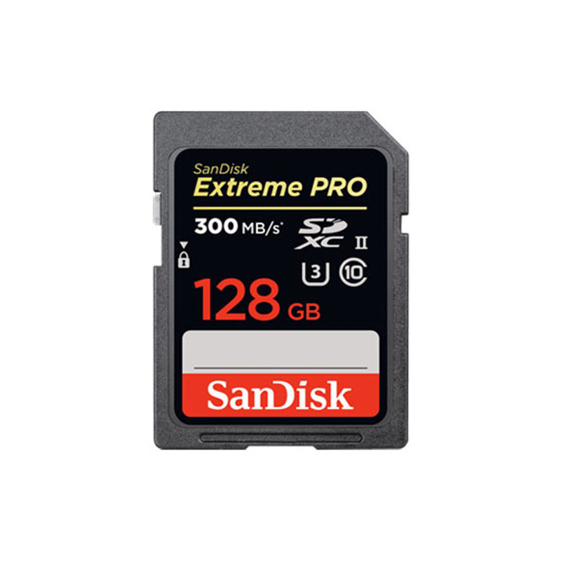 Carte SD SanDisk Extreme Pro SDXC 128Go. - Vitesse de lecture: jusqu'à 300 MB/s - Vitesse d'écriture: jusqu'à 260 MB/s - U3 : Enregistrement Vidéo 4K (matériel neuf non déballé, garantie totale 5 ans).