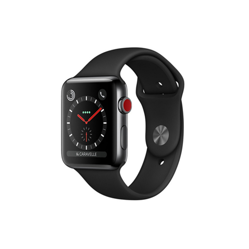 Apple Watch Series 3 boîtier en acier noir sidéral de 38mm avec Bracelet Sport noir Cellular. Répondez à un appel depuis n'importe quelle situation. Demandez à Siri d'envoyer un message ou courez au son de vos playlists préférées. Tout ça, sans votre téléphone. Ces fonctionnalités sont rendues possibles grâce à la connectivité cellulaire. Boîtier acier inoxydable GPS et GLONASS intégrés Puce W2 Altimètre barométrique Cardiofréquencemètre Accéléromètre et gyroscope Etanche jusqu'à 50 mètres Cristal de Saphir Dos en céramique Wi-Fi (802.11b/g/n 2,4 GHz) Bluetooth 4.2 Jusqu'à 18 heures d'autonomie watchOS 4 (adaptateur secteur non inclus, vendu séparément) (matériel neuf non déballé, garantie totale 3 ans).