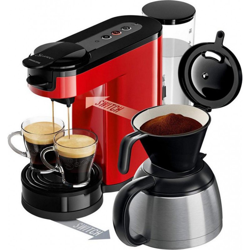 Design et pratique, la cafetière Senseo Switch 2 en 1 (capacité 1L) Philips Senseo vous permettra de faciliter votre quotidien. Disposant d’un témoin lumineux et d’une arrêt automatique, elle est très pratique et peut produire jusqu’à 10 tasses de café filtré. Possibilité de préparer des cafés dosettes. EAN 8710103774280.