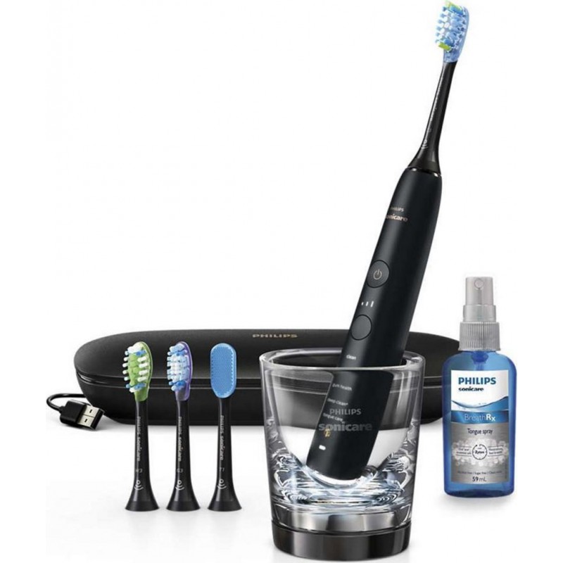 La brosse à dents électrique PHILIPS HX9924/13 Sonicare est conçue pour éliminer jusqu’à 100% de tâches en plus qu’une brosse à dents manuelle grâce à 5 programmes complets: nettoyage, massage, blancheur, polissage et soin des gencives complétés par 3 niveaux d’intensité du brossage. Il s’agit de la Brosse à dent Philips la plus complète en terme de soin de sa catégorie. A batterie, la brosse se recharge automatiquement lorsqu’elle est placée dans le verre à dents ou par USB grâce au coffret de voyage fournis. EAN 8710103804574.