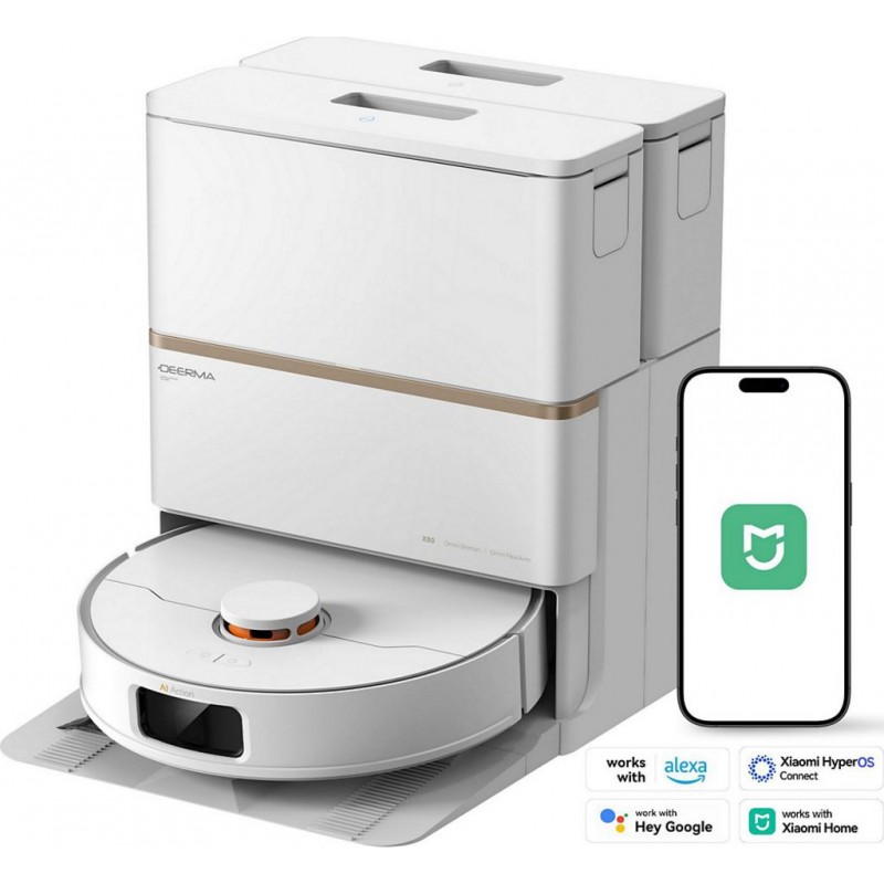 DEERMA X80 – Robot Aspirateur Laveur avec Station Tout-en-Un Navigation laser 120° | Bras biomécanique intelligent | Station 4.0 sans entretien | Brosse anti-enchevêtrement | Aspiration 15 000 Pa DEERMA X80 est un robot aspirateur laveur haut de gamme avec station tout-en-un 4.0. Aspiration puissante de 15000 Pa, navigation laser LiDAR 120°, brosse anti-enchevêtrement, bras biomécanique intelligent pour zones difficiles et serpillière relevable. Autonomie 240 min pour 300m², station auto-nettoyante avec sac 3L et réservoir 4L. Contrôle via Xiaomi Home, Alexa et Google Assistant. Nettoyage efficace, mains libres et hygiénique. src=&-34 https://upload.cdn.baselinker.com/products/8007293/2e2458d0b5ffa4fd5301b7398400ed84.jpg&-34 alt=&-34 &-34 width=&-34 1080&-34 height=&-34 810&-34 /> À propos de Deerma. Produit neuf dans son emballage d'origine bénéficiant de la garantie originale du fabricant. EAN 6977076723840.