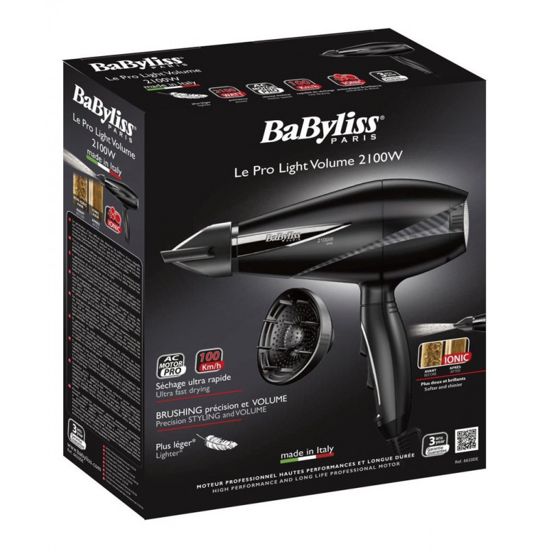 Babyliss Sèche cheveux professionnel Le Pro Light Volume 2100W. Électroménager. Beauté. Marque Babyliss. Le sèche cheveux professionnel. Modèle 6610DE. Référence fabricant 6610DE. EAN 3030050098976.