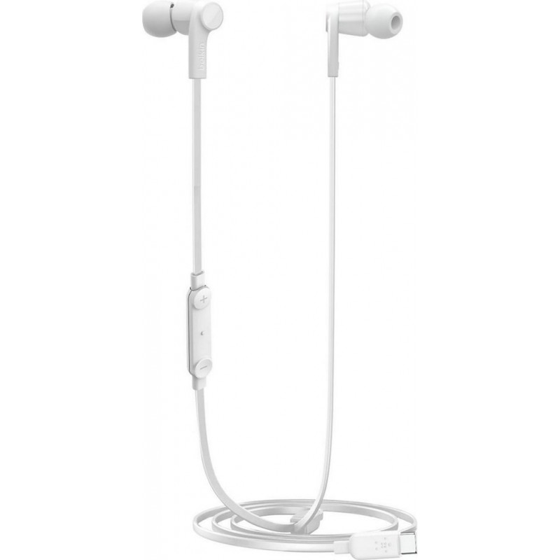 Écouteurs filaires USB C Belkin SoundForm. Microphone intégré avec boutons de commandes intuitifs. Haut-parleurs de 10mm assurant un son immersif. Embouts intra-auriculaires avec 3 tailles incluses. Cordon en silicone plat résistant de 1.2m de long. Caractéristiques et points forts: Écouteurs blanc série SoundForm de Belkin pour écouter pleinement les fichiers audios et vidéos de votre téléphone Branchement aisé sur tous les smartphones, tablettes et appareils avec port audio USB-C Microphone intégré vous permettant de passer des appels en toute simplicité, de manière fluide et nette Boutons de commande pour contrôler la lecture musicale, le volume ainsi que les appels. Produit neuf dans son emballage d'origine bénéficiant de la garantie originale du fabricant. EAN 0745883775538.