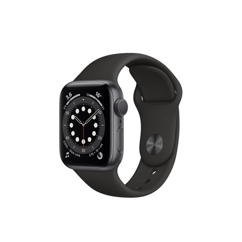Apple Watch Series 6 GPS, Boitier aluminium Gris Sideral 40 mm Boucle Sport Noir [reference Apple MG133] [late 2020] [systeme watchOS 7] GPS/GNSS Boussole Altimetre toujours active Etanche jusqu'a 50 metres 3Capteur de taux d'oxygene dans le sang (app Oxygene sanguin)1 Capteur electrique de frequence cardiaque (app ECG)2 Capteur optique de frequence cardiaque de 2e generation Accelerometre jusqu'a 32 g avec detection des chutes Gyroscope Capteur de luminosite ambiante Haut-parleur 50 plus puissant Micro (permettant l'utilisation de l'app Bruit) Apple Pay GymKit Capacite de 32 Go Dos en ceramique et cristal de saphir 40 mm (324 x 394 pixels, surface d'affichage de 759 mm2) Ecran Retina OLED LTPO toujours active (luminance de 1 000 nits) Puce SiP S6 avec processeur bicoeur 64 bits jusqu'a 20 plus rapide que la S5 Puce sans fil W3 Apple Puce U1 (Ultra Wideband) Wi-Fi (802.11b/g/n 2,4 GHz et 5 GHz) Bluetooth 5.0 Batterie au lithium-ion rechargeable integree jusqu'a 18 heures Cable de charge magnetique (materiel neuf, garantie totale 3 ans). EAN 0190199865976.