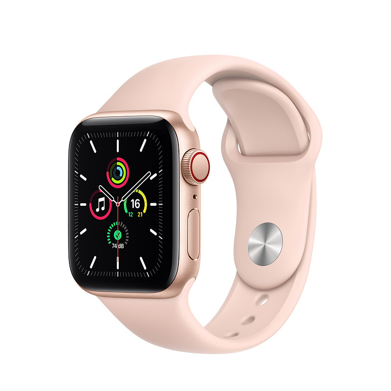 Apple Watch SE GPS Cellular Aluminium Or 40mm Bracelet Sport Rose [reference Apple MYEH2] [late 2020] [systeme watchOS 7] GPS/GNSS Etanche jusqu'a 50 metres2 Apple Pay Capacite de 32 Go 40 mm (324 x 394 pixels, surface d'affichage de 759 mm2) Ecran Retina OLED LTPO (luminance de 1 000 nits) Puce SiP S5 avec processeur bicoeur 64 bits Puce sans fil W3 Apple Wi-Fi 802.11b/g/n 2,4 GHz Bluetooth 5.0 LTE et UMTS Batterie au lithium-ion rechargeable integree jusqu'a 18 heures 6 Cable de charge magnetique (materiel neuf, garantie totale 3 ans). EAN 0190199768062.